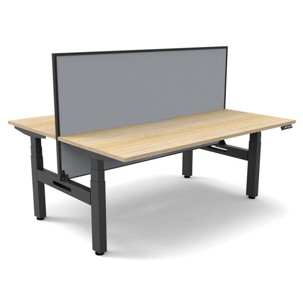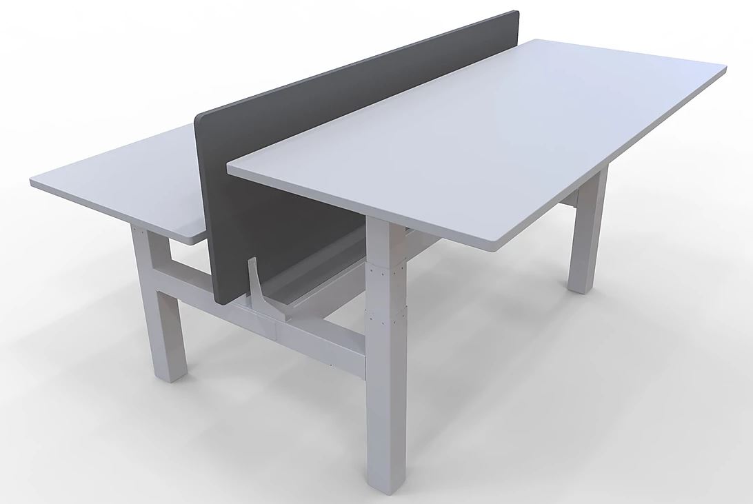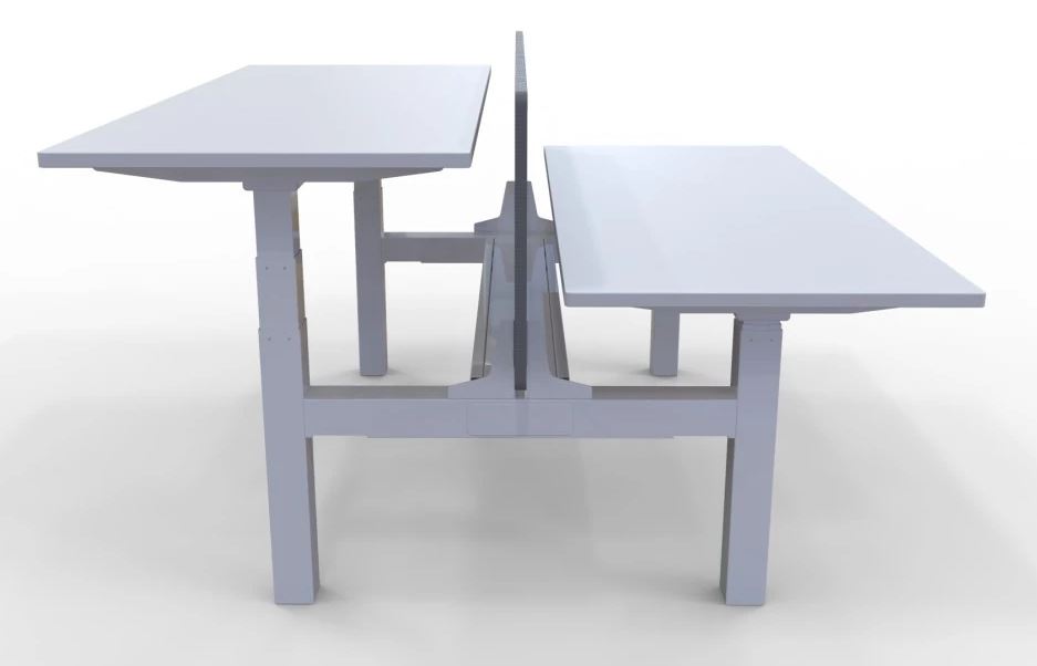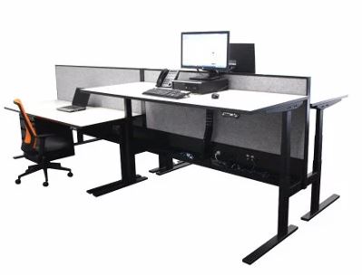 ELEV8 3 Stage B2B Sit Stand Desk for 2 persons is perfect for the open plan or single office. It cuts down the space required on the office floor. Both desks work independantly to each other and the screen between the desks is static.