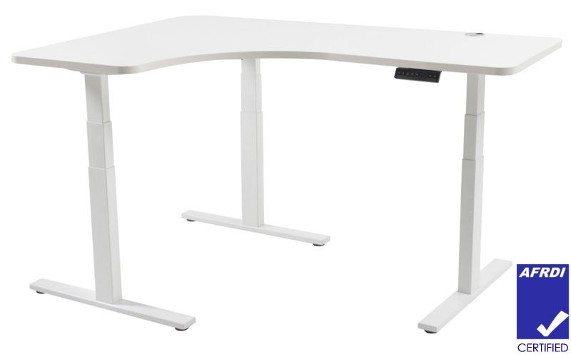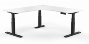 Our ELEV8 3 Stage Sit Stand Corner Desk are designed in a unique manner. Using a standard straight desk frame, then adding an extra leg and motor to create a corner frame, allows retro fitting and defitting at any time through the life of the frame.