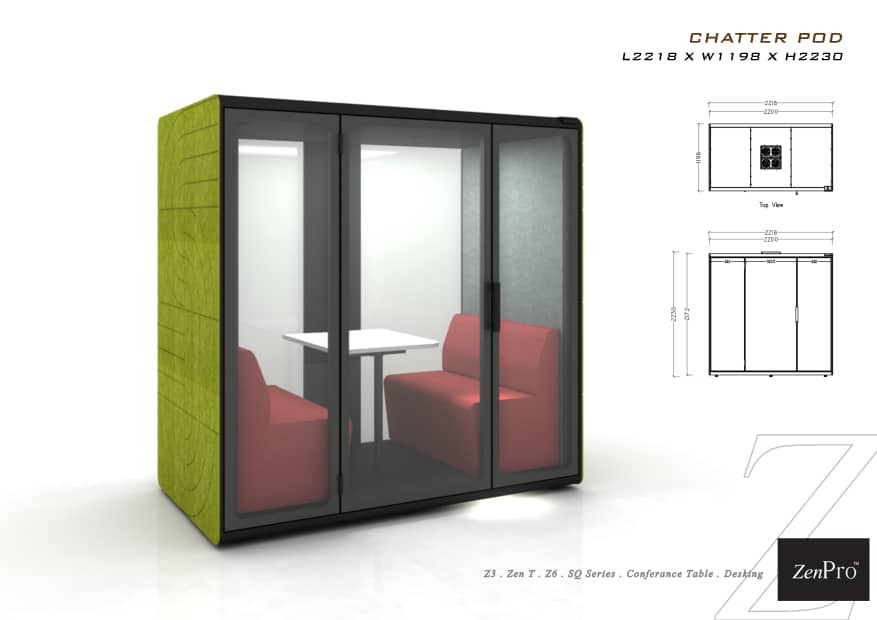The NEW Chatter Pod Meeting is the 2nd item of our new quiet pod range, replacing the very successful Vis-a-Vis Sound Pod range.